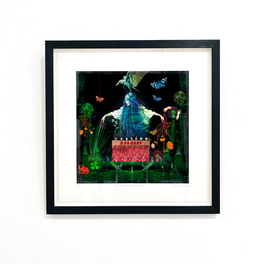 I work with a mixture of found vintage images which I chop up and use with my own autographic and photographic images; an eclectic library of personal and archetypal iconography. I create illusionist environments from disparate sources, working with an intense palette of colour opposites. I usually work from dark to light. The light source is always something that’s important to me - I like a dreamlike and nocturnal feel.