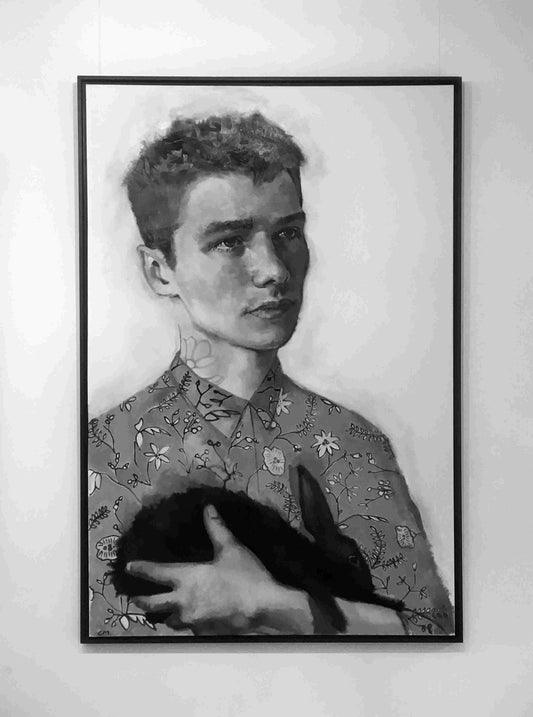 A new face in the ScotlandArt gallery, Clare Morton studied Fine Art at Gray's School of Art in Aberdeen, and has gone on to exhibit both in the UK and further afield - from Edinburgh to India. Clare's work is an exciting and fresh look at the figurative genre, each portrait oozes personality and narrative, in the artists own distinct style. "I'm influenced by a wide range of sectors in modern day society. One of which is exploring the role of identity and gender, with particular emphasize on women in contemporary culture. I'm interested in individuals who aren't easily categorised into an stereotypical fraction, who wish to question and transcend their femininity/masculinity, their sexuality, by mashing up and assimilating different sub group ethos. Where diversity is explored by a clash of street culture, mainstream branding and marginal fringes." Clare draws much of her inspiration from fashion magazines, and street style photography which is clearly recognizable in the graphic, playful nature of fabrics portrayed and in the ‘realistic’ and visually stunning features of her subjects.