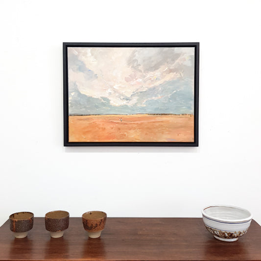 Elisa likes to spend her time in the landscapes she is painting, opening her senses to the environment, absorbing the changes in light, atmosphere, temperature and smell. This whole experience is then mixed with her feelings, memories and dreams, creating the process of a new painting, without the fixed idea of where it will go. In a way it is a process of curiosity and discovery that began outside, merges with the inside and grows on the canvas.
