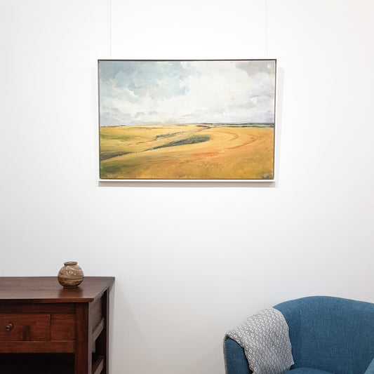 Most recently her paintings are inspired by the landscapes of Northern England and Scotland, although the influence of her Mediterranean colours is still visible in her palette.