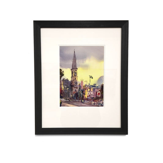 Karen works predominately in watercolour in a loose impressionistic style, painting urban streetscapes and the harbour scenes of the east and west coasts of Scotland. She has mastered the demanding medium of watercolour to the point where she can capture scenes of complex draughtsmanship with a mixture of loose brushstrokes and a measured sense of the paint's unpredictable behaviour when applied wet onto wet. Karen aims to delight using her ability to capture the vagaries of restless weather and the rare moments of light which transform familiar urban settings into living art.