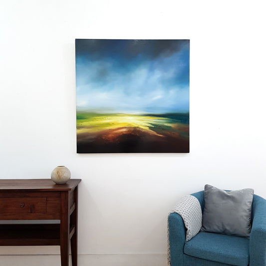 With global representation, fine artist, Paul Bennett specialises in original landscape and seascape paintings, abstract paintings and also contemporary portraiture paintings. The three styles are very different, but all strive to generate a sense of intimacy and isolation while leaving the subject open to interpretation. The seascape and landscapes paintings are created from memory, rather than referring to photography, resulting in more abstracted and expressive pieces rather than realistic representation. The portraiture has a different angle and the aim is to reinvent the mass produced and give it a more visceral interpretation. All the paintings for sale are original art created using oil paint.