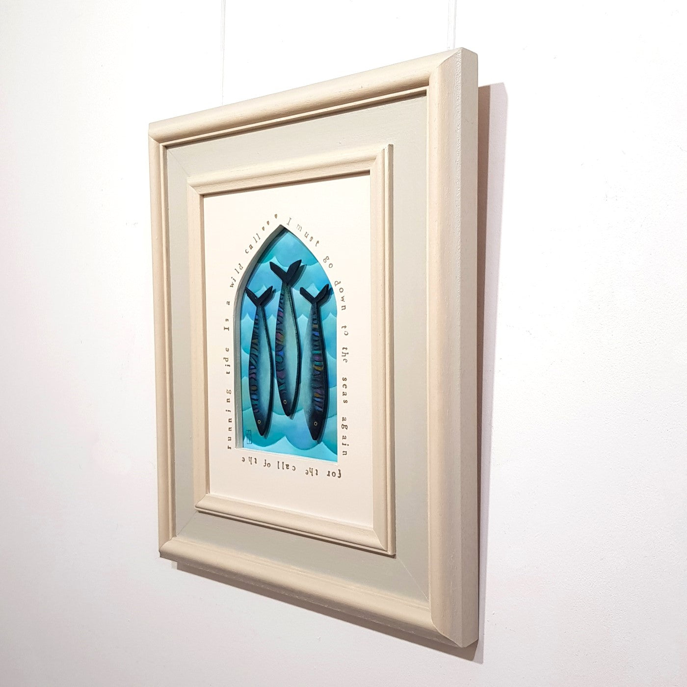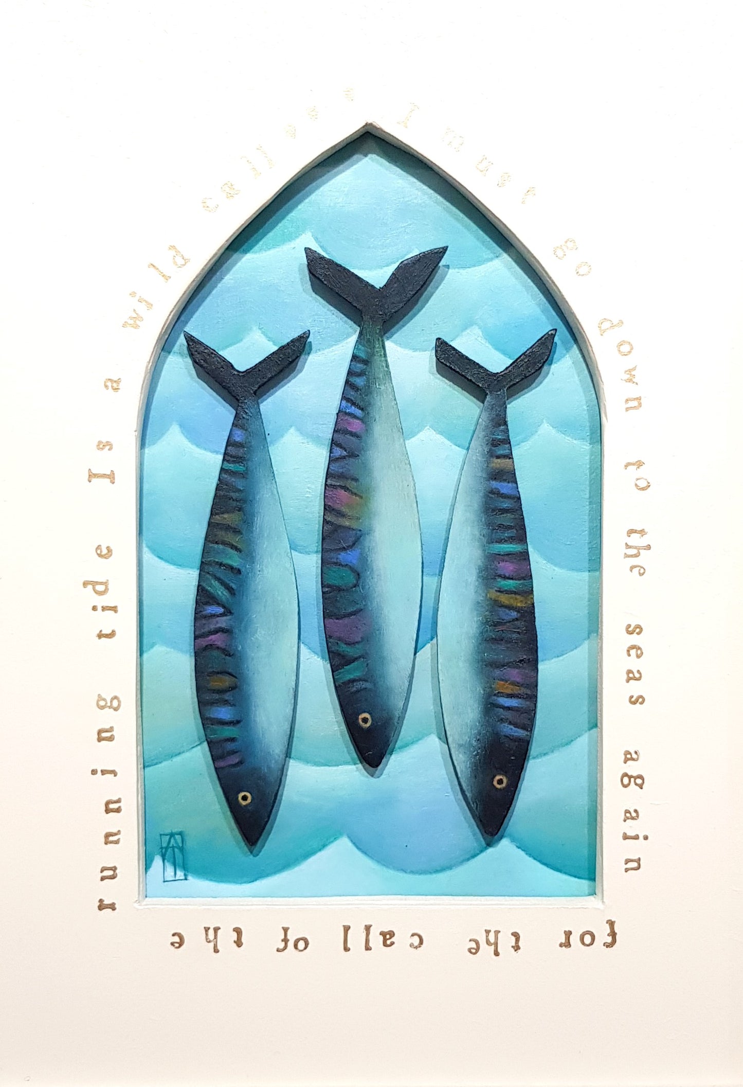 Alison is inspired by nature, architecture and anything to do with the sea. Her work often features ships, fish and all things maritime. Her paintings usually feature materials such as sand, linen and metal leaf to create and add texture to her work. This is probably due to her textile background which is apparent in her artwork.