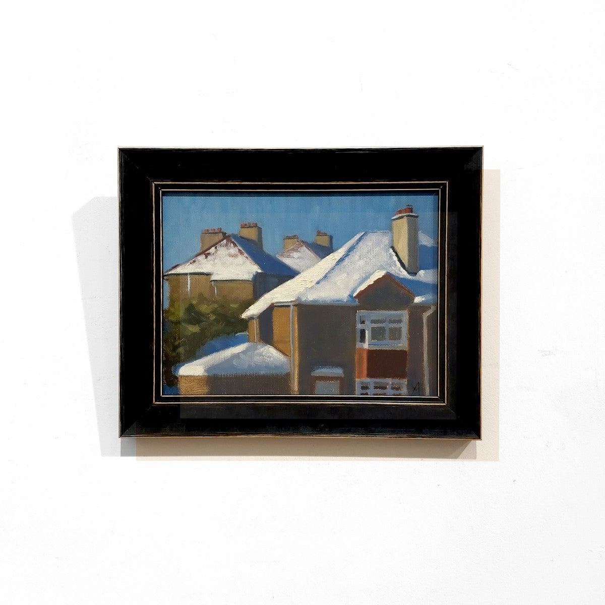 Morning sun strikes snowy Glasgow West End roofs.