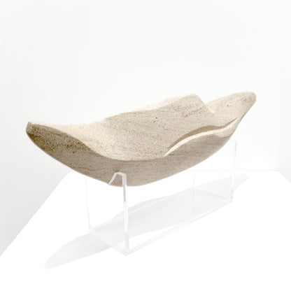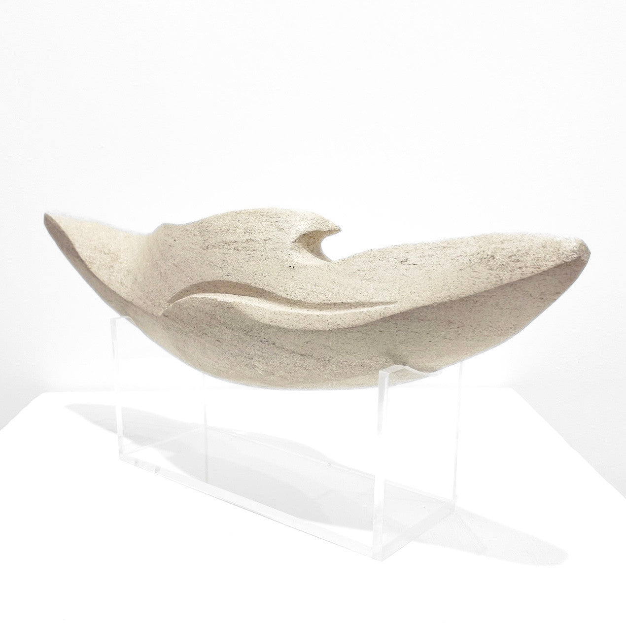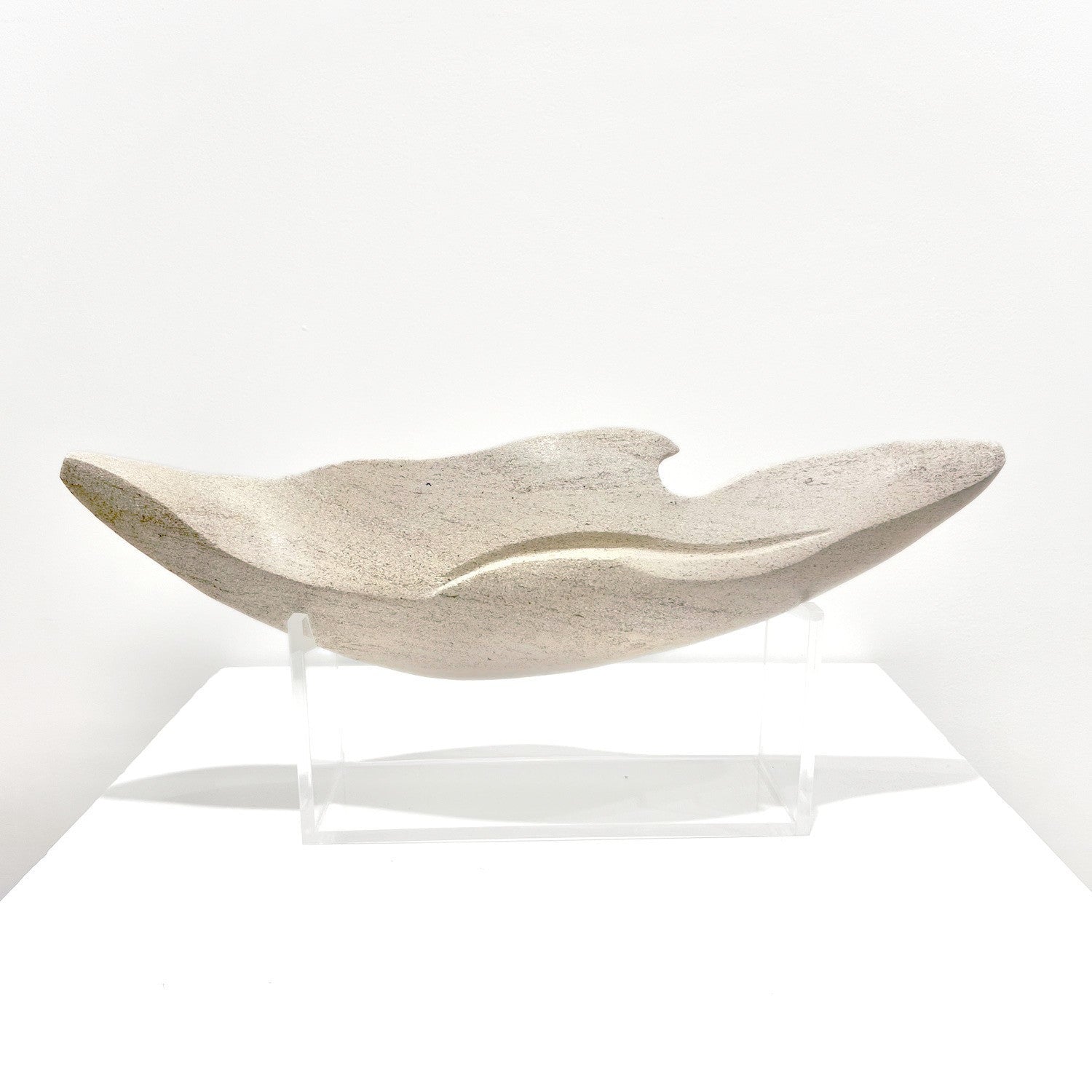 A flowing sculpture crafted from Ancaster limestone, its undulating forms emulating water or wind.