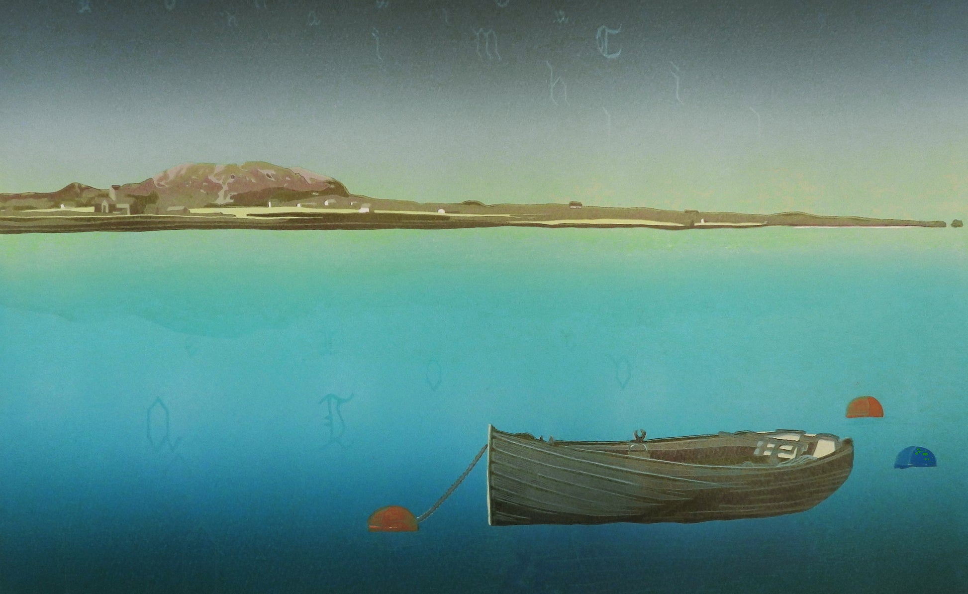 A picture of serenity: a single rowboat is moored on the jewel-like waters around Iona.