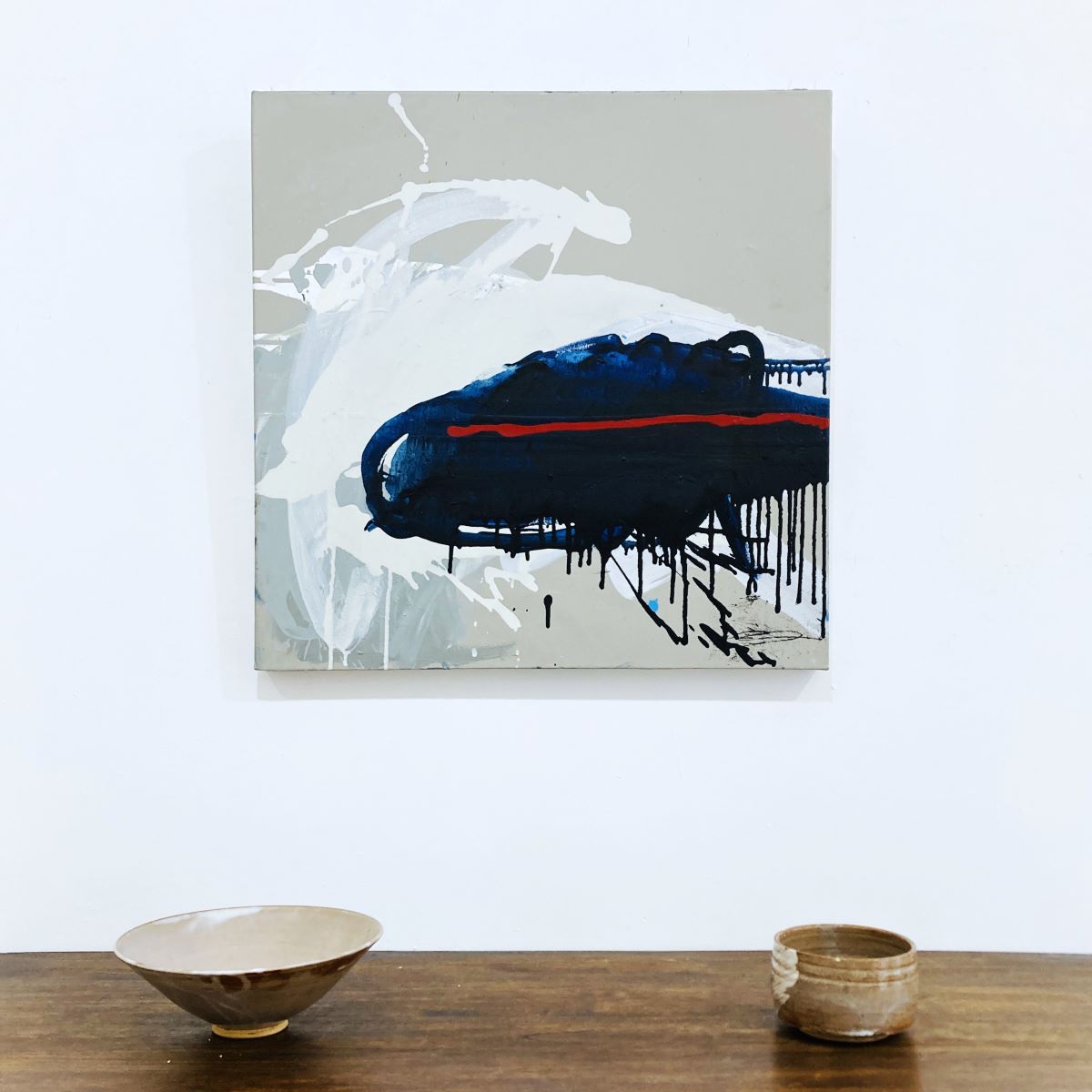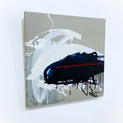 A fierce wave crashes while a sliver of red cuts through the water in this abstracted seascape.