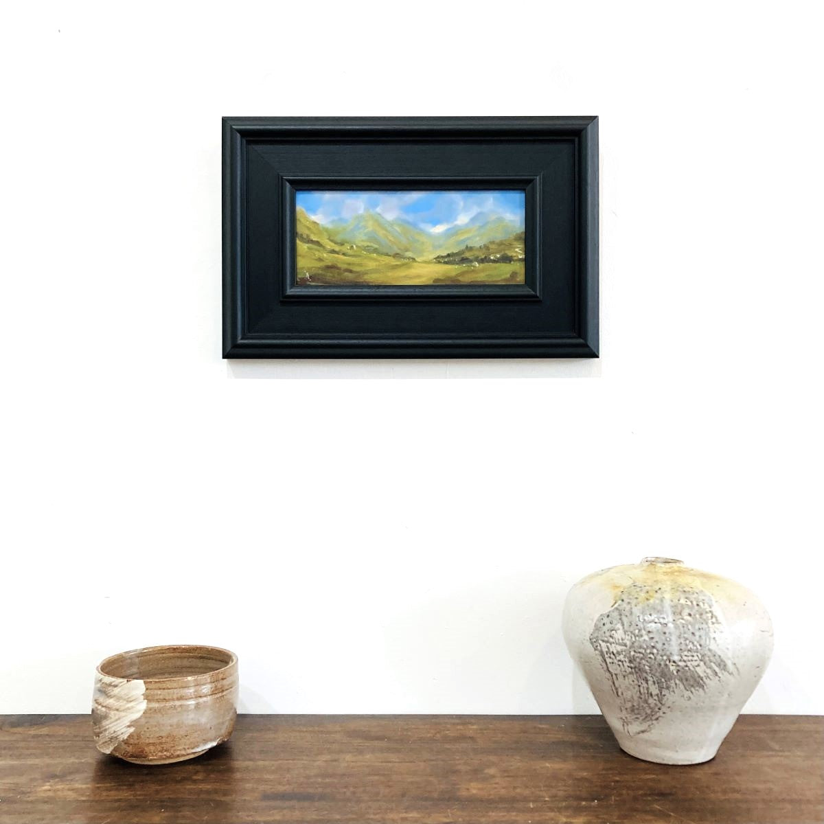 Painted 'En Plein Air' (on location) in Glen Nevis, this original oil painting captures the Scottish Highlands in a peaceful gap in the typical Scottish weather. For sale with free worldwide delivery.