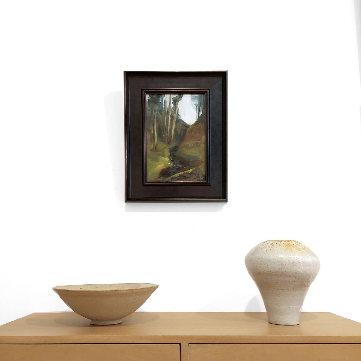 Painterly marks create texture in this portrayal of Cessnock's ancient woodland.