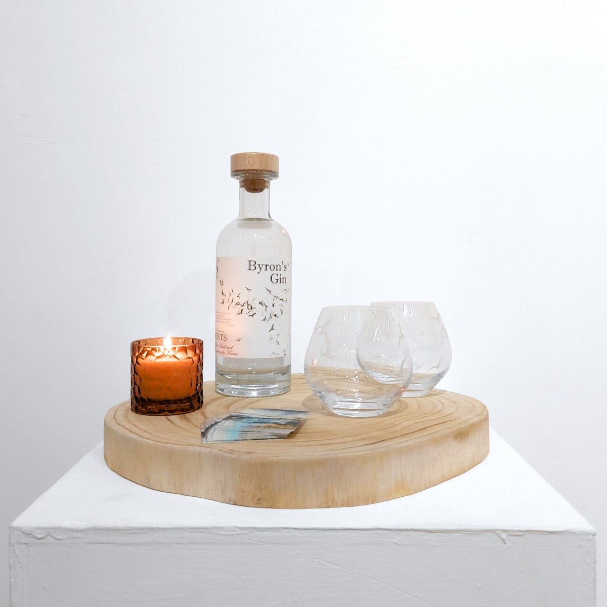 This piece is accompanied by a gift set courtesy of Speyside Distillery, including a bottle of their award-winning Byron's Gin and two glasses hand-etched by Joanna McDonough.