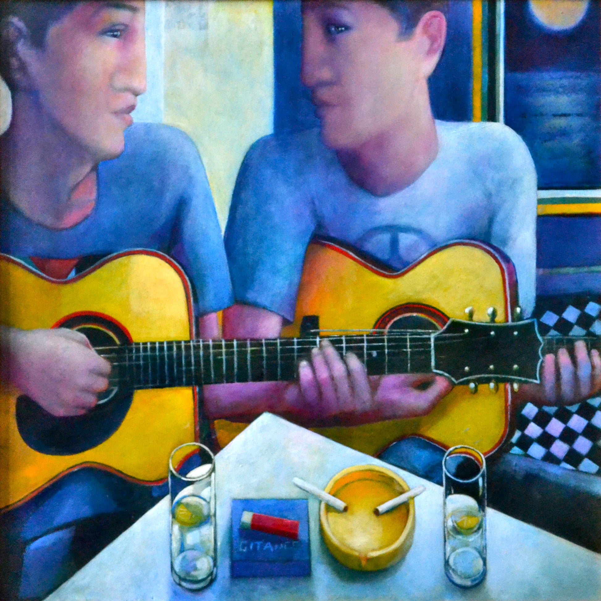 A night of long chats and longer drags fades into music in this figurative work by contemporary Scottish artist Jonathan Hood.