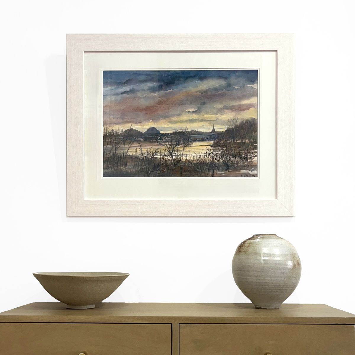 Since graduating from the Royal College of Art, Julia Gurney has worked with a range of different media and subjects, including portraits and cityscapes. On moving to Helensburgh 27 years ago it was the beauty of the West Coast of Scotland which caught her imagination, motivating her to develop a way of capturing the effect on those landscapes of the ever changing light and moods resulting from the varying weather conditions.