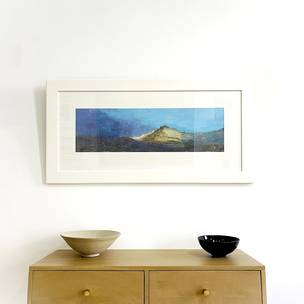 The saturation is amplified in this wintry study of Goatfell, with deep blue clouds threatening the sky.