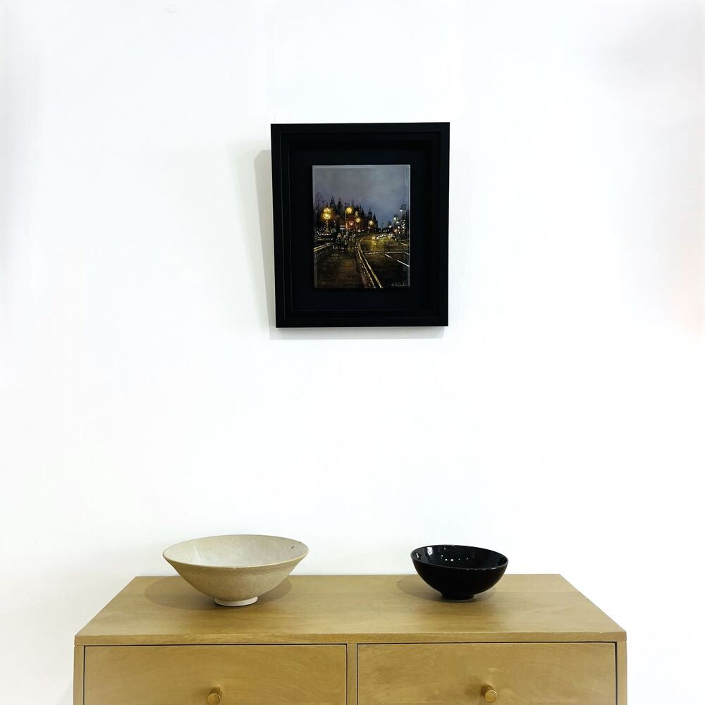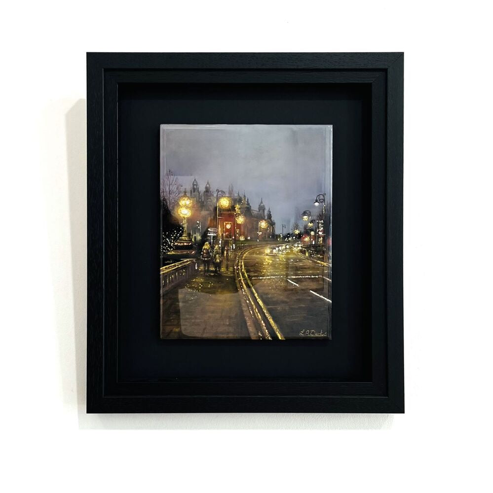 The ornate lampposts that surround Kelvingrove cast a dazzling golden light onto the landscape. This oil painting sealed with resin is available with free worldwide delivery.