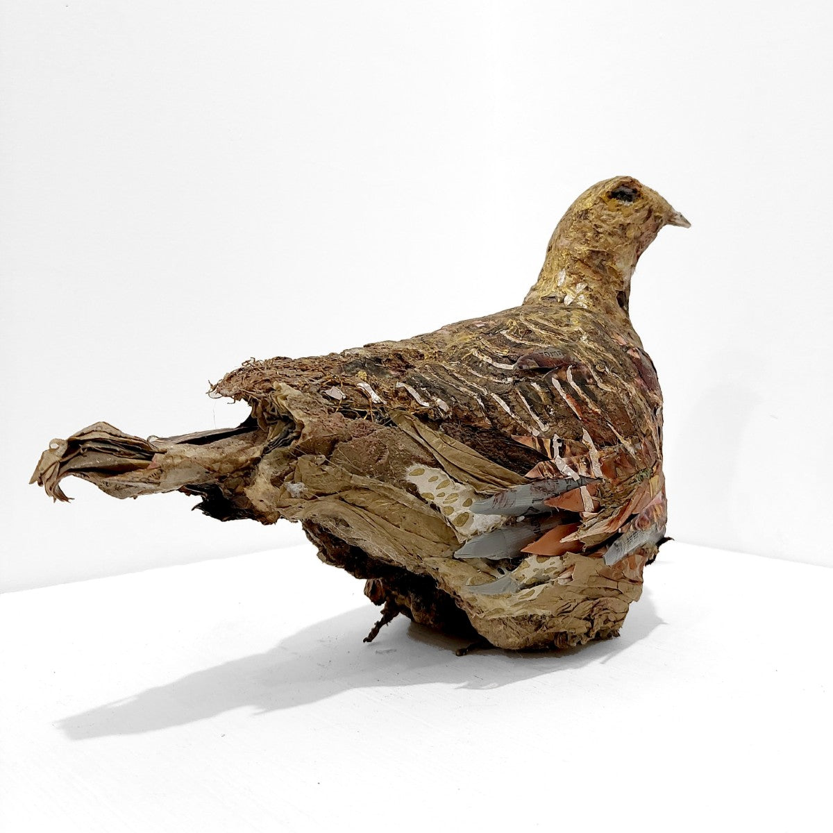 Artist Mark Gibbs delicately depicts a female red grouse, fashioned in paper and peat from the Cumbrian nature reserve of Geltsdale.
