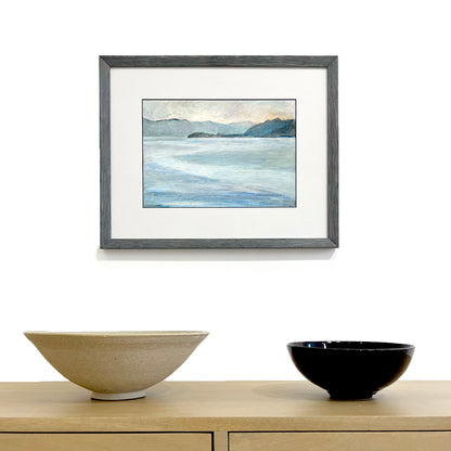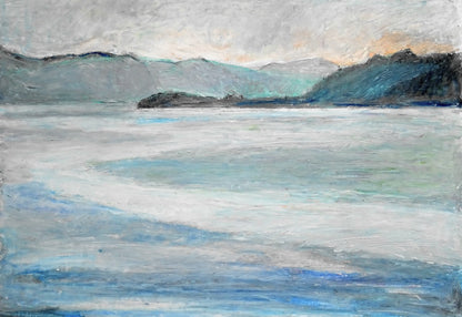 A pale sun rises over the icy waters of Loch Sunart in the Highlands of Scotland.