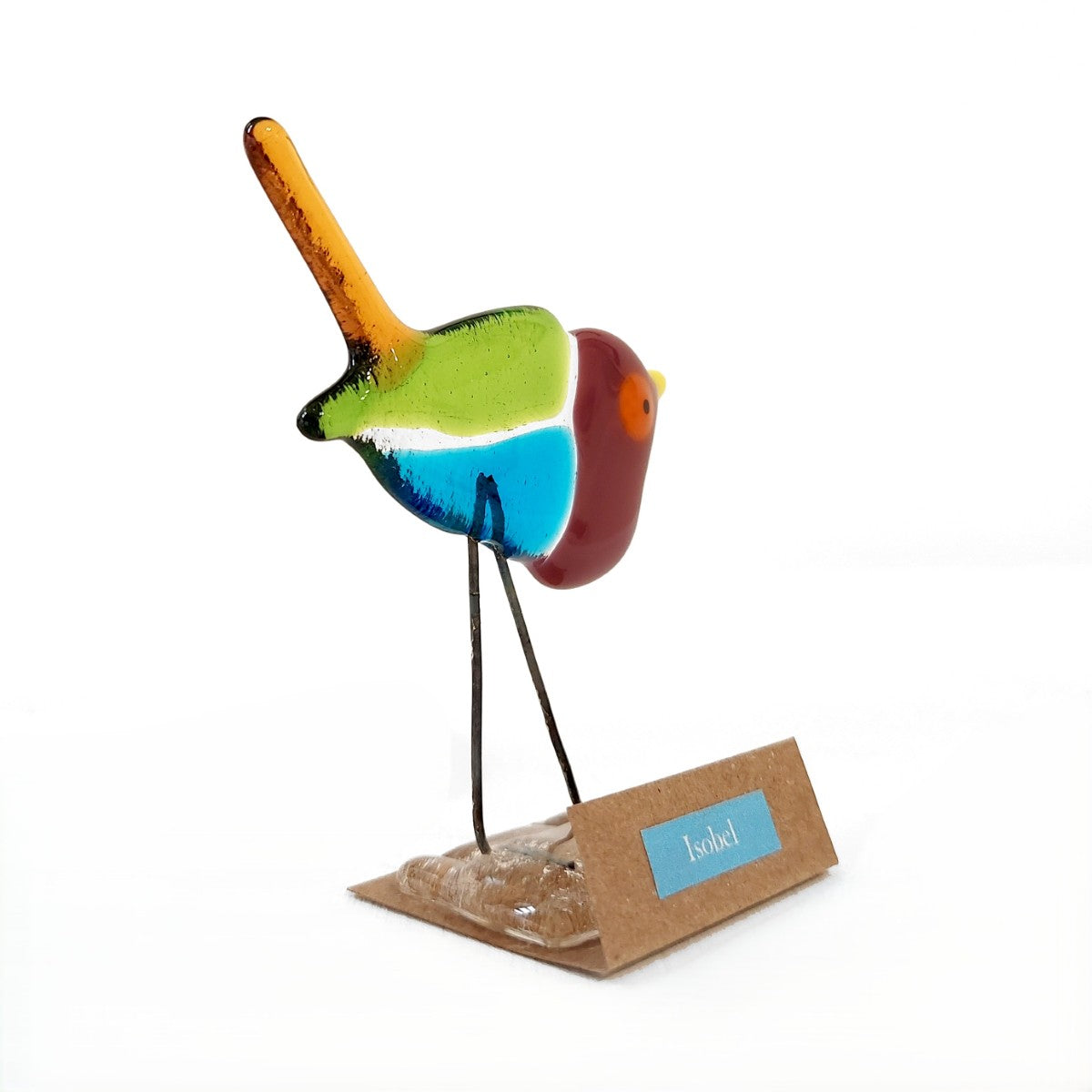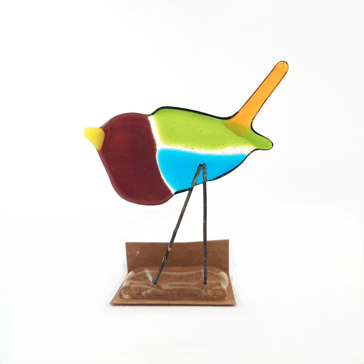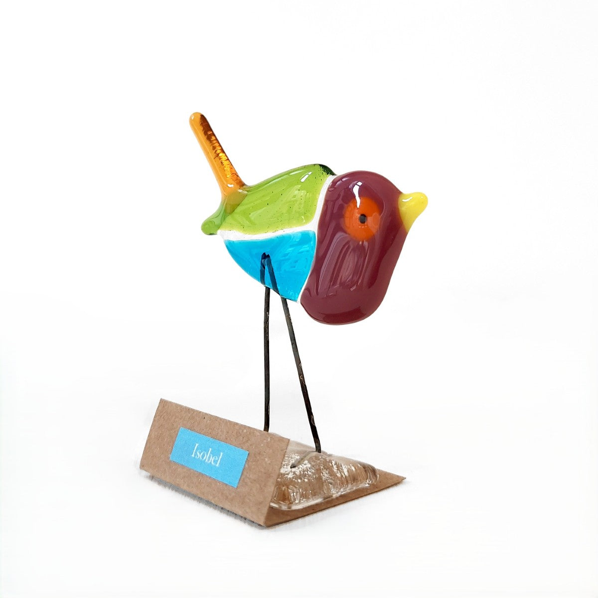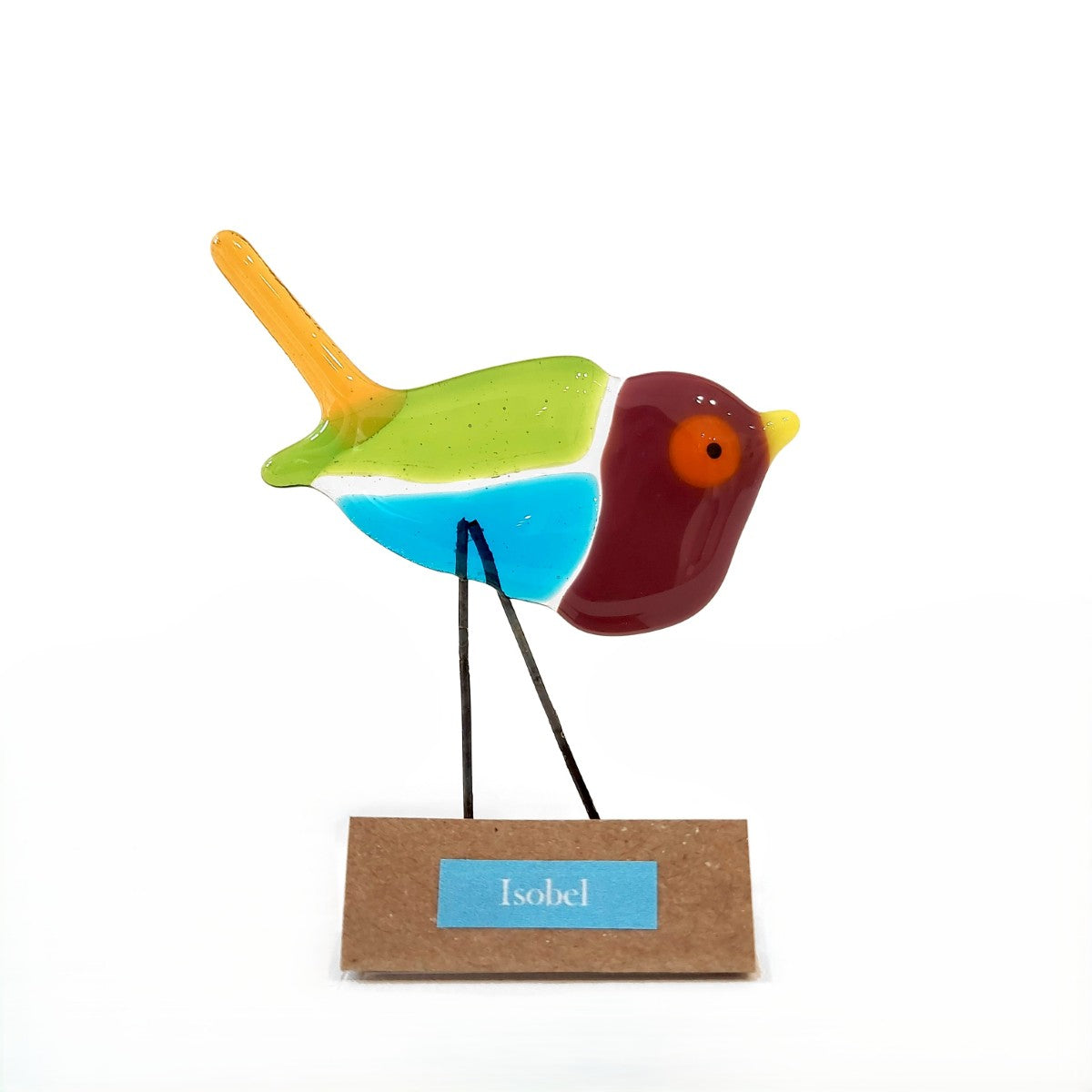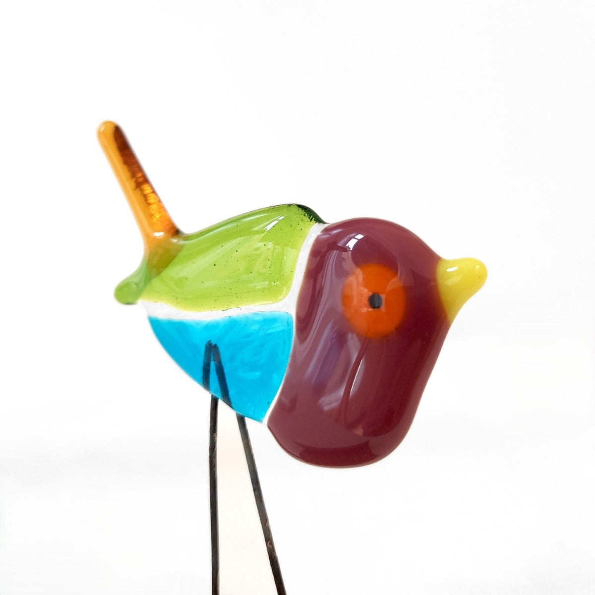Many of Adalime’s creations focus on nature, predominately birds. The birds are made from fused glass, sourced from a local supplier. Some of the birds are constructed utilising repurposed glass from glass artists workshops and personal projects. The wire legs on the birds are also repurposed.