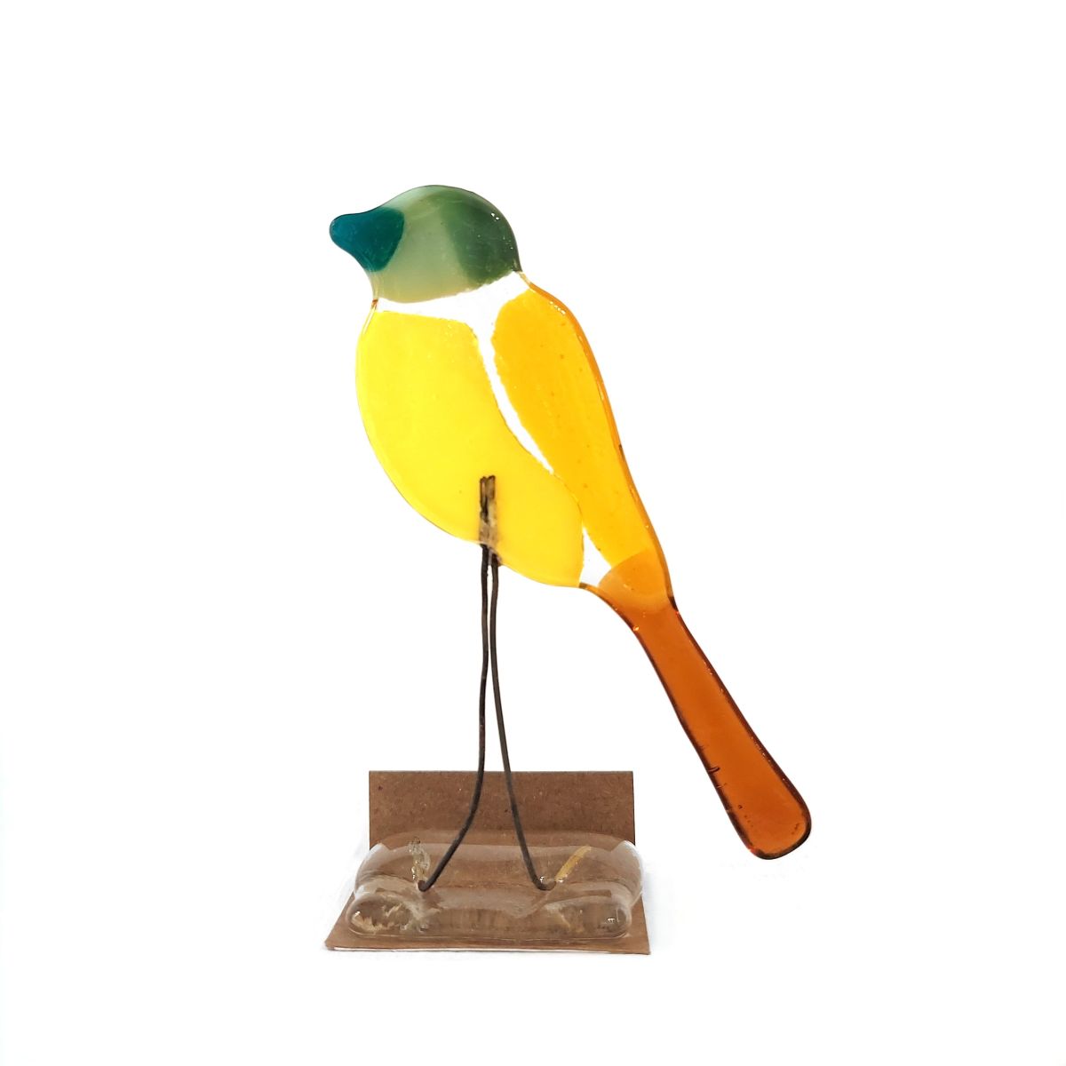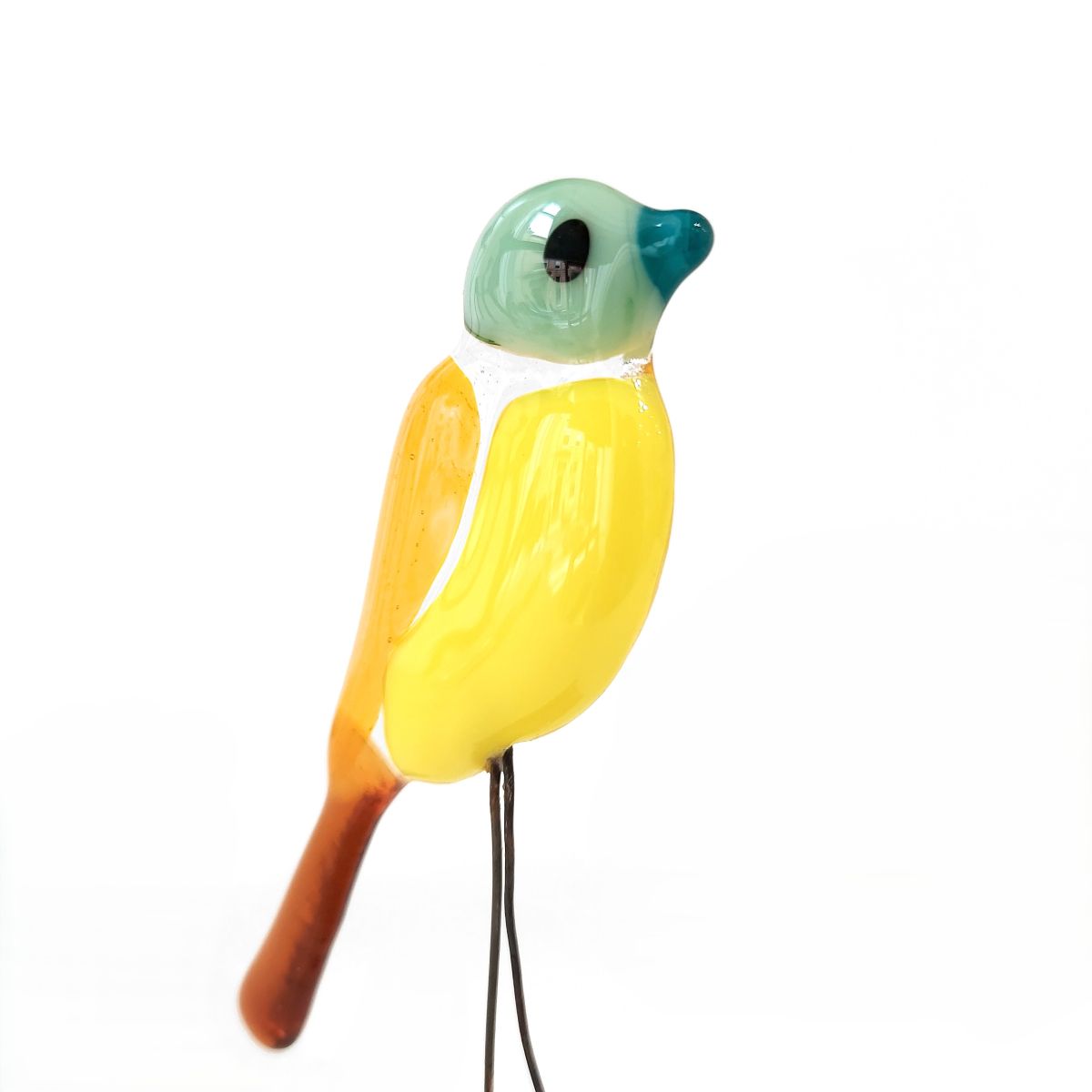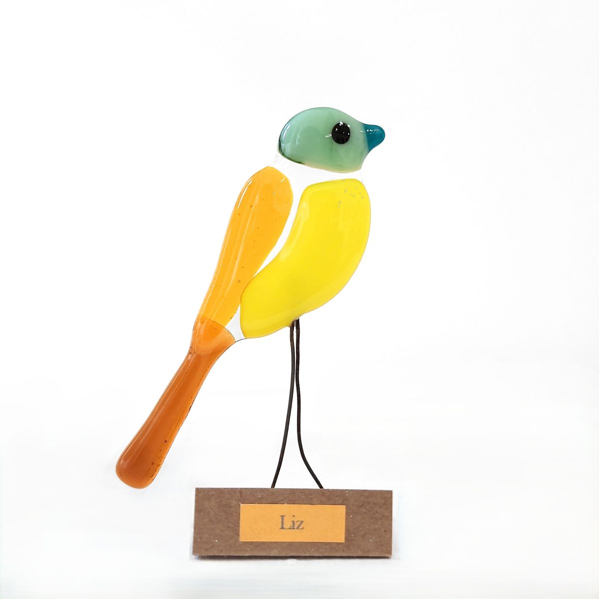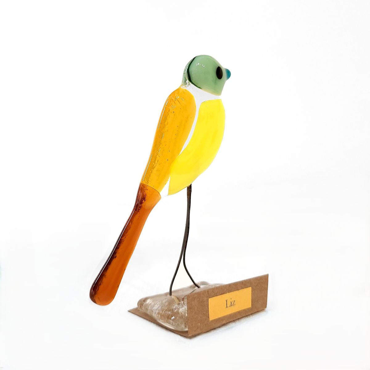 Many of Adalime’s creations focus on nature, predominately birds. The birds are made from fused glass, sourced from a local supplier. Some of the birds are constructed utilising repurposed glass from glass artists workshops and personal projects. The wire legs on the birds are also repurposed.