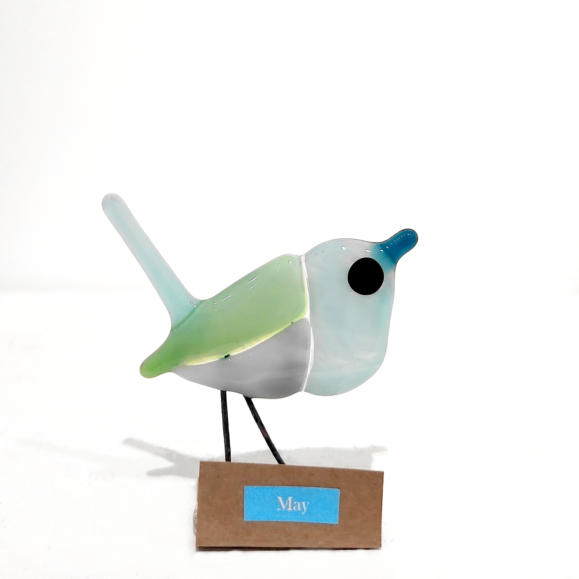 Many of Adalime’s creations focus on nature, predominately birds. The birds are made from fused glass, sourced from a local supplier. Some of the birds are constructed utilising repurposed glass from glass artists workshops and personal projects. The wire legs on the birds are also repurposed.