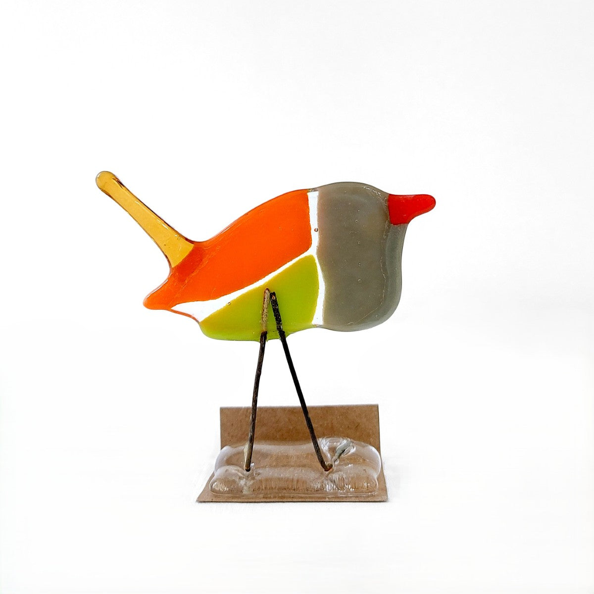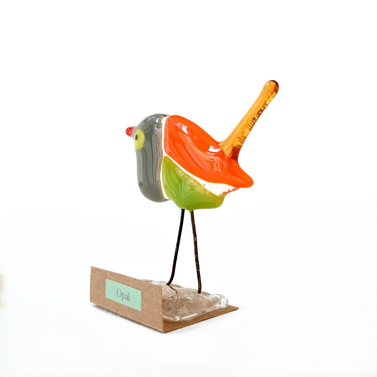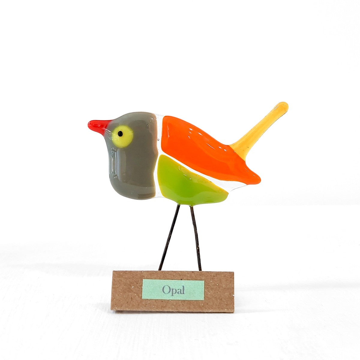 Many of Adalime’s creations focus on nature, predominately birds. The birds are made from fused glass, sourced from a local supplier. Some of the birds are constructed utilising repurposed glass from glass artists workshops and personal projects. The wire legs on the birds are also repurposed.