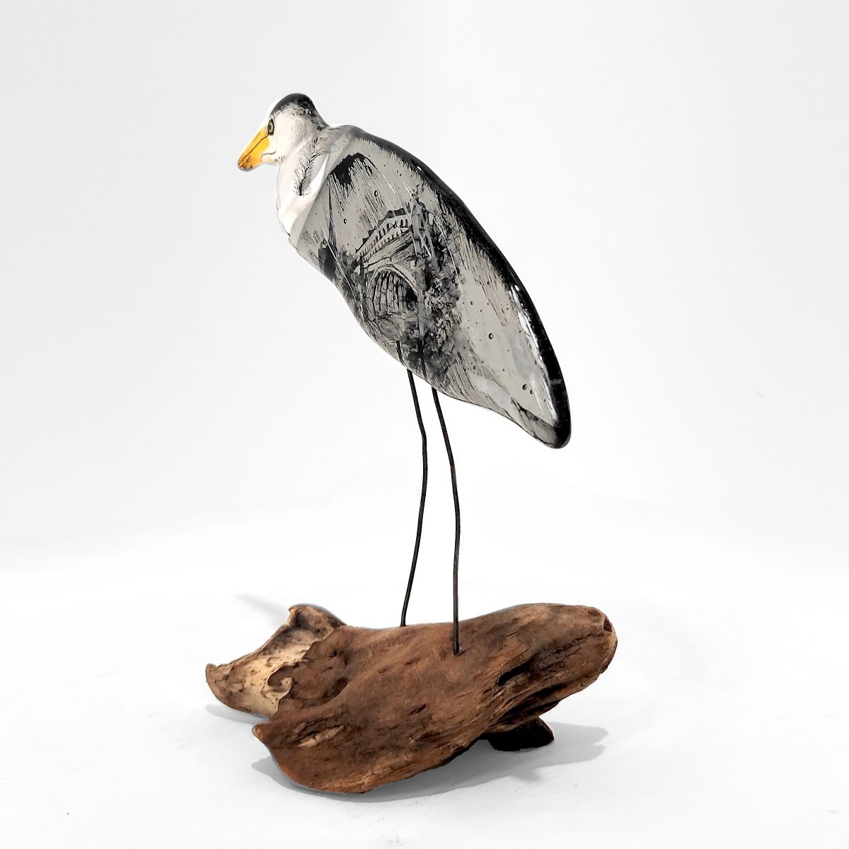 Many of Adalime’s creations focus on nature, predominately birds. The birds are made from fused glass, sourced from a local supplier. Some of the birds are constructed utilising repurposed glass from glass artists workshops and personal projects. The wire legs on the birds are also repurposed.