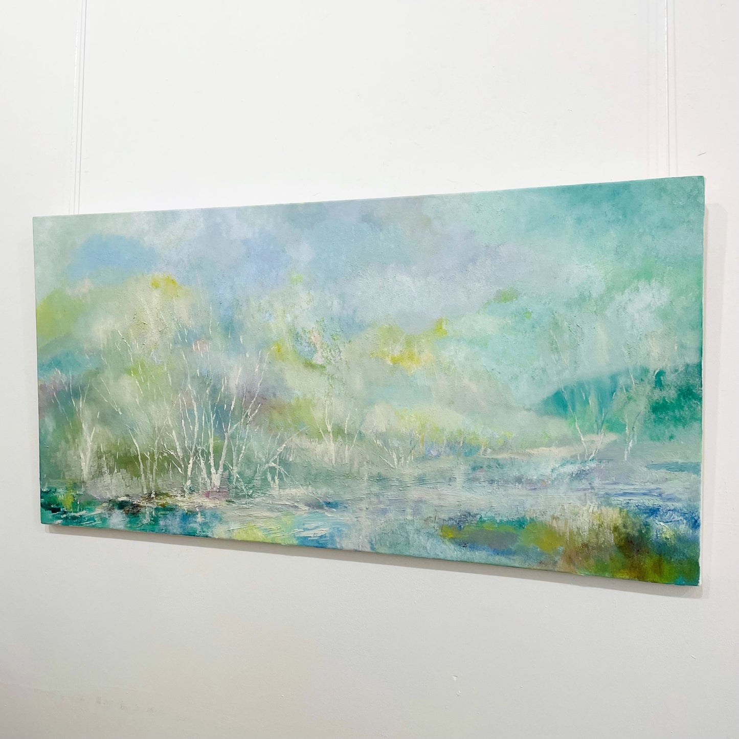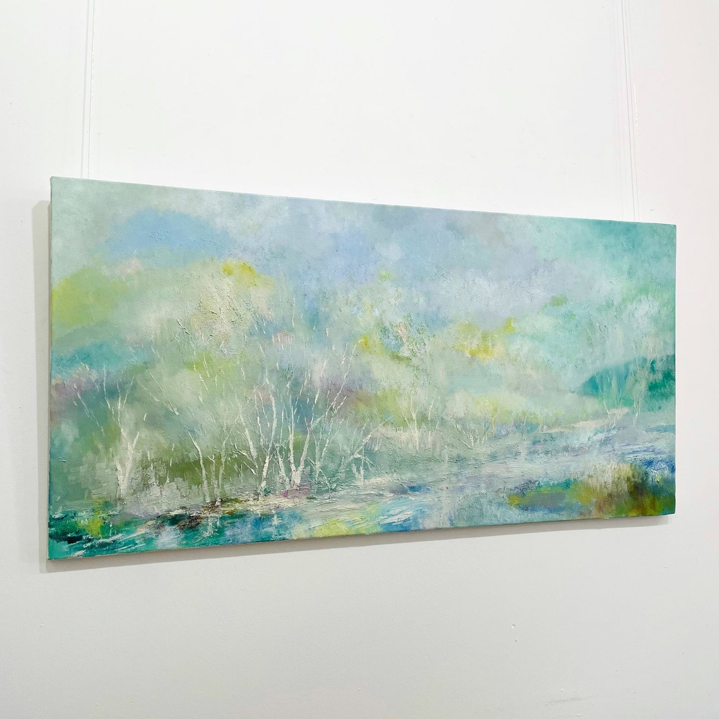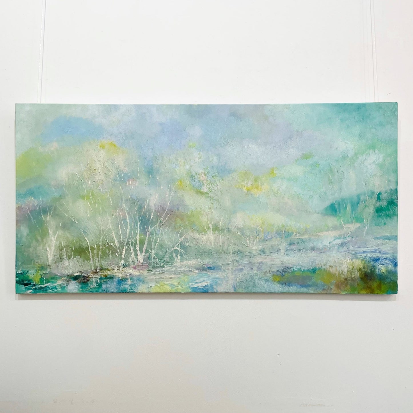 Soft tones of green blur and fade into eachother in this hazy landscape.