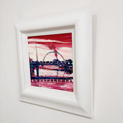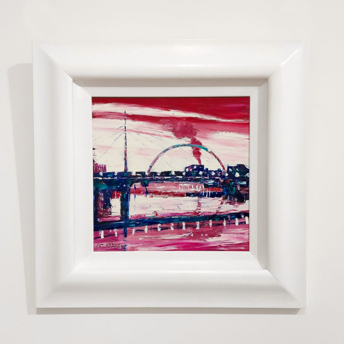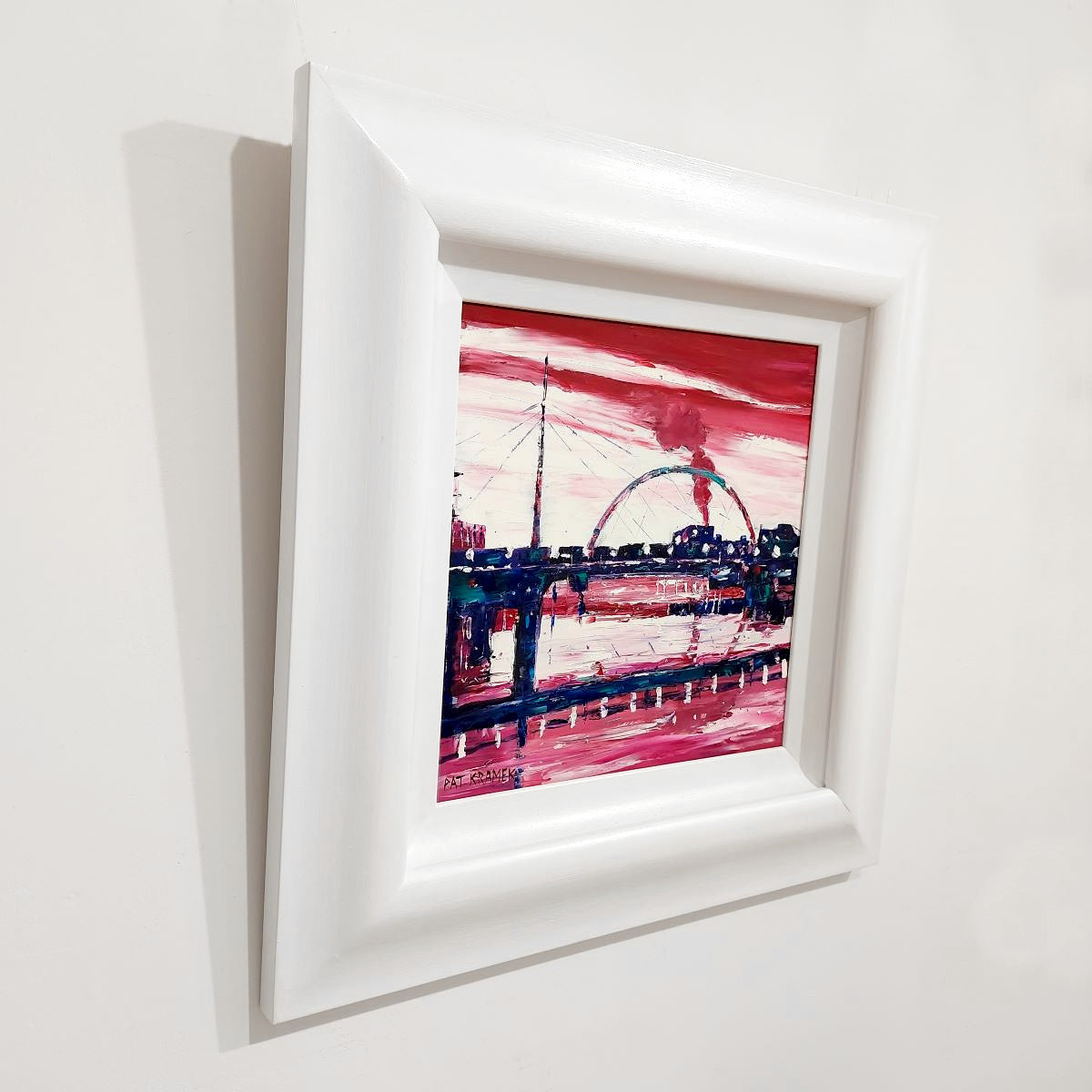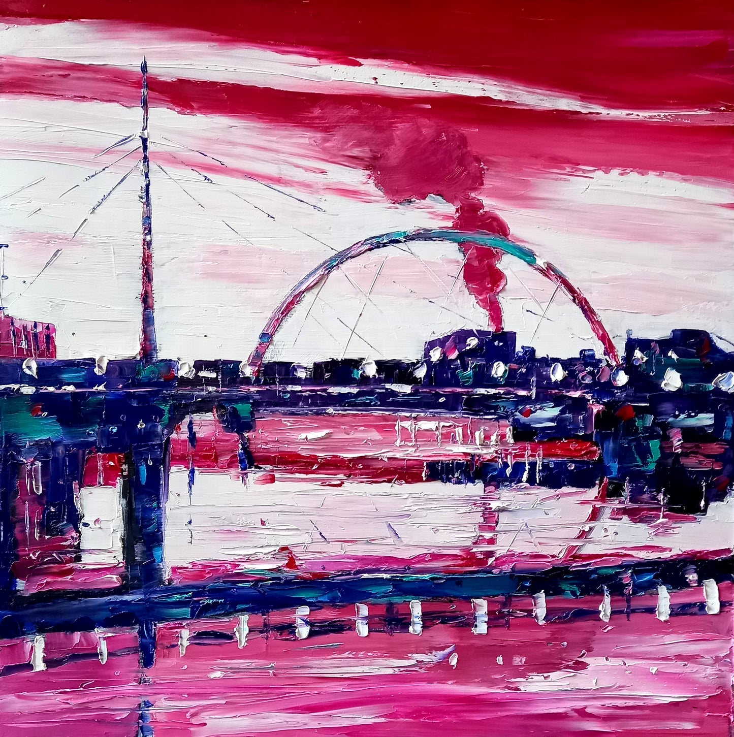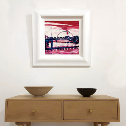 Magenta suffuses this Glasgow cityscape featuring The Clyde Arc.