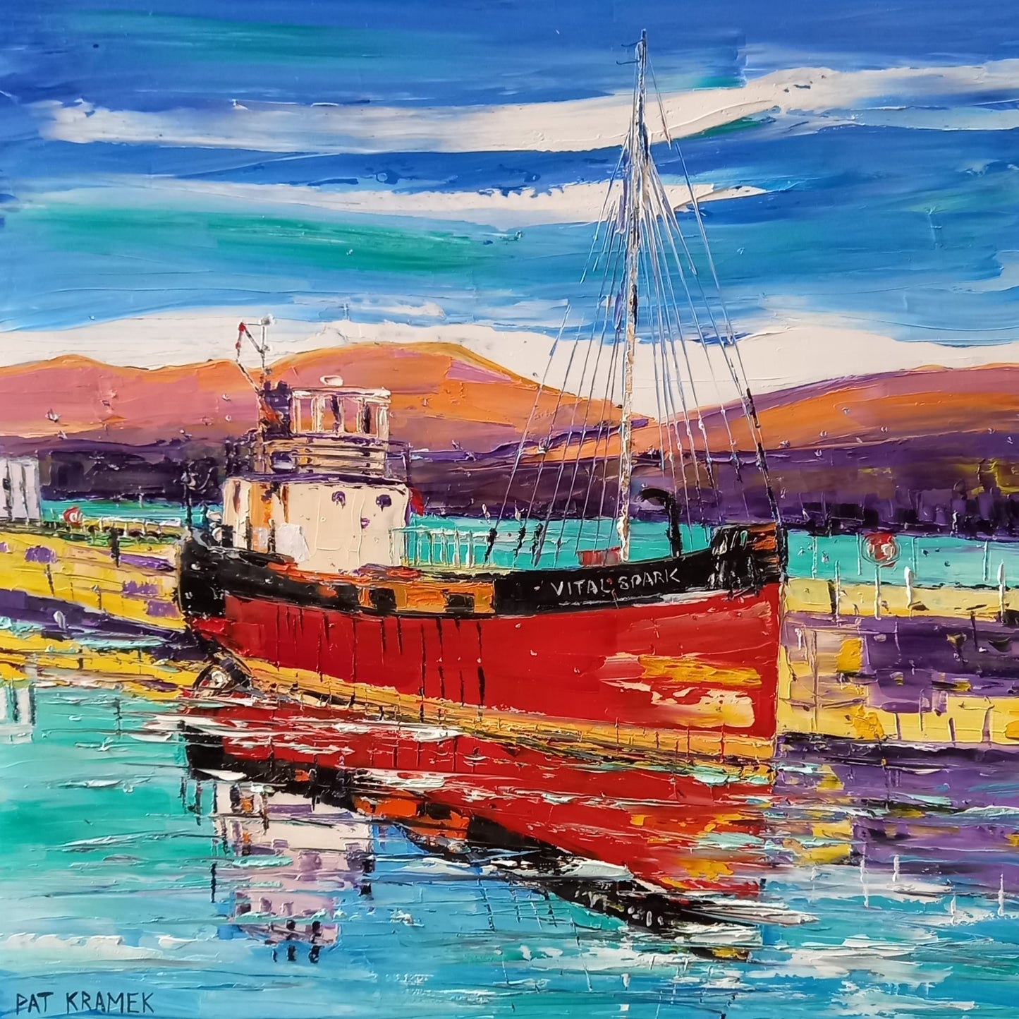 A painting of historic ship Vital Spark, immortalised as the fictional puffer from the Para Handy books by Neil Munro.