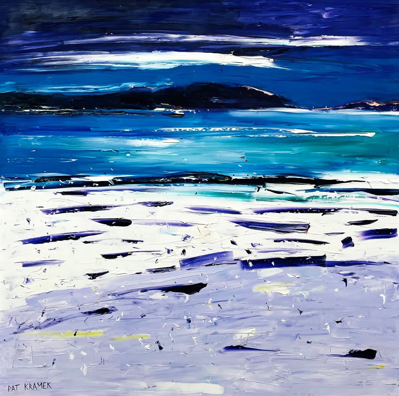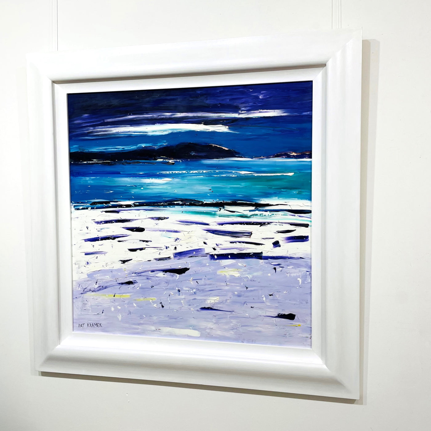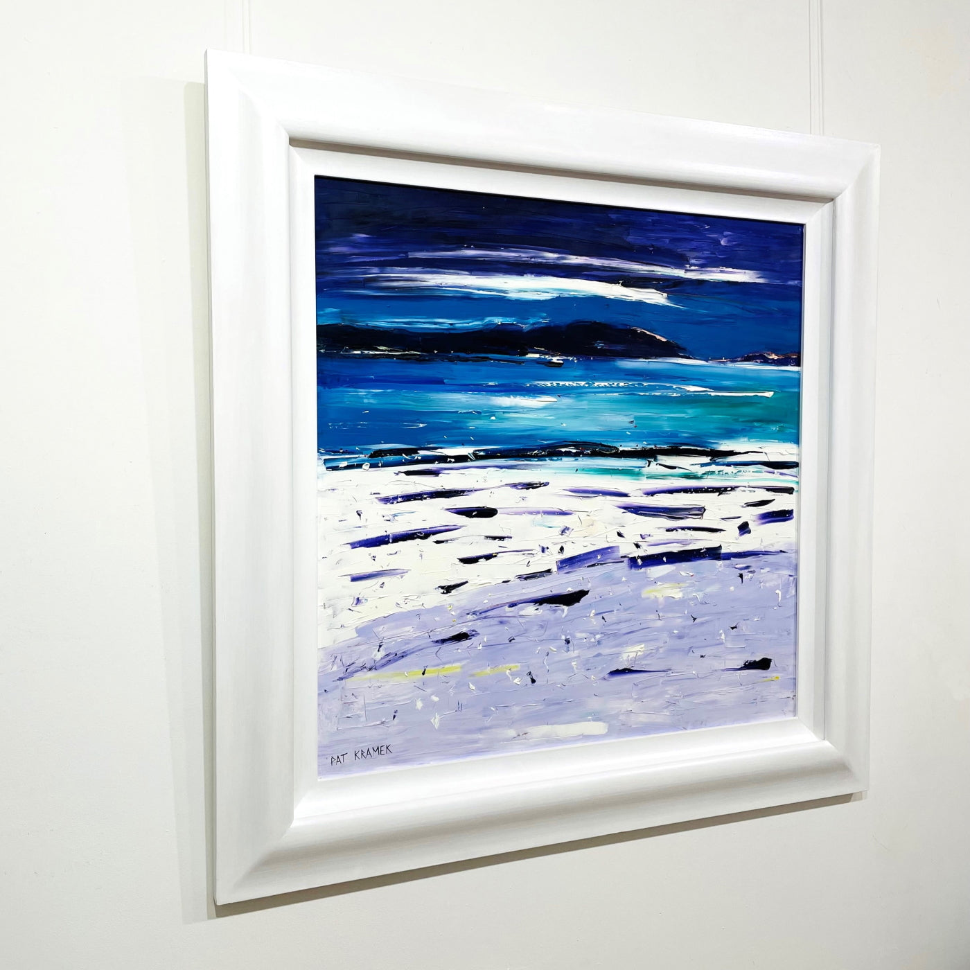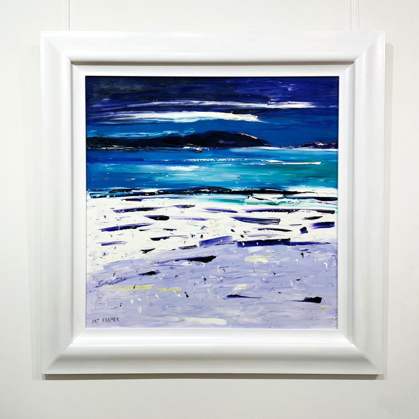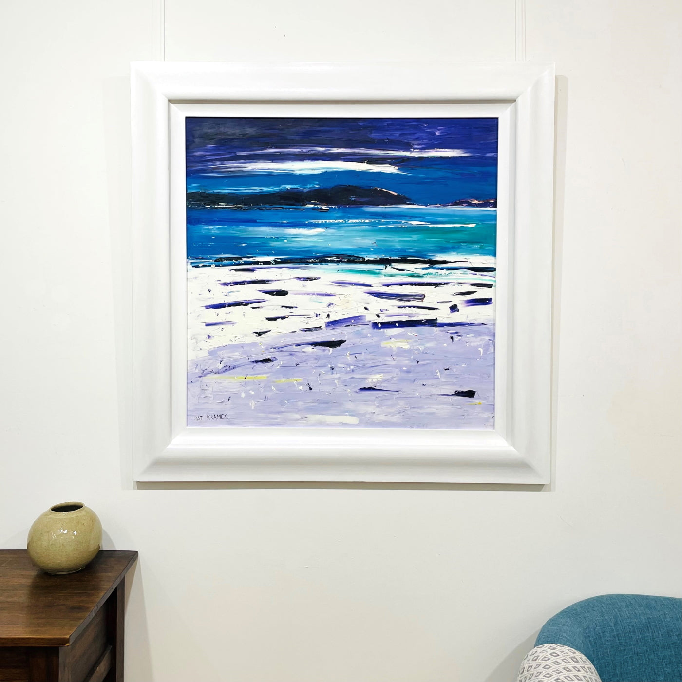 An original Scottish oil painting of one of many gorgeous sandy beaches found on the isles of the Scottish archipelago off the west coast of the Scottish mainland.
