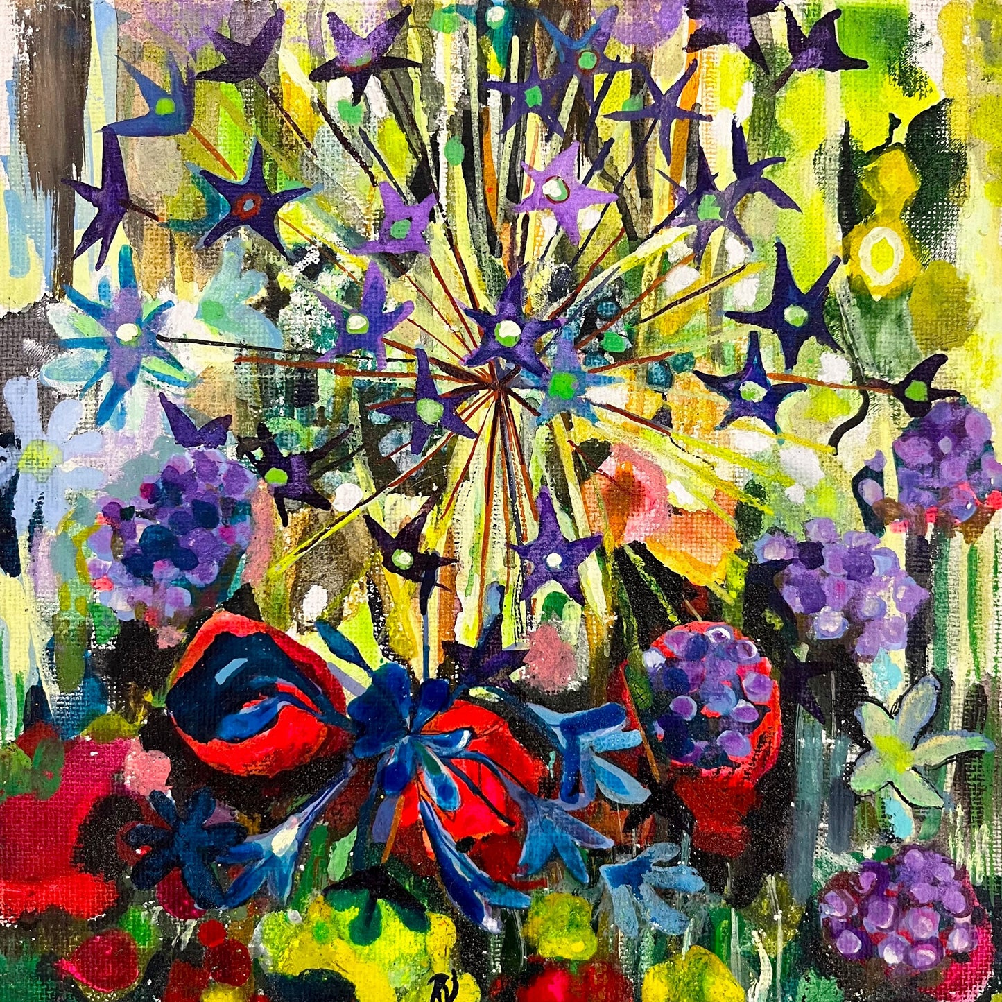 Rachel's work is often a balance between realism and abstraction, with a strong emphasis on colour. She uses unusual techniques to achieve this, such as fluorescent colour, raw pigment laid onto the canvas, or juxtaposing the natural colours created by pyrography with paint. She currently works primarily in watercolour and ink. Rachel also has a keen interest in figurative work, working from live models with an emphasis on strong female models.