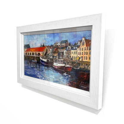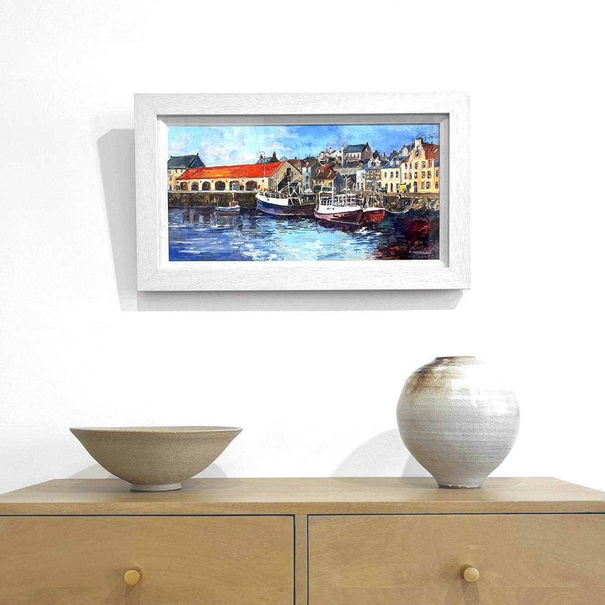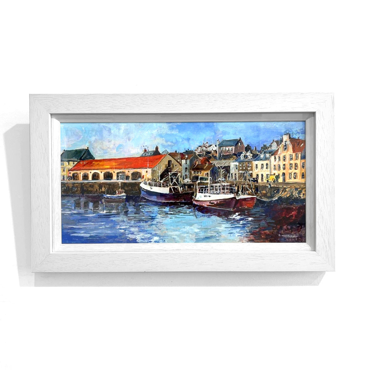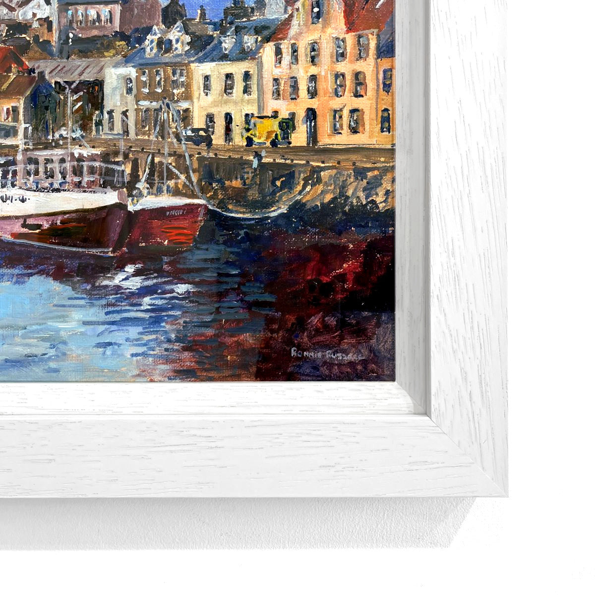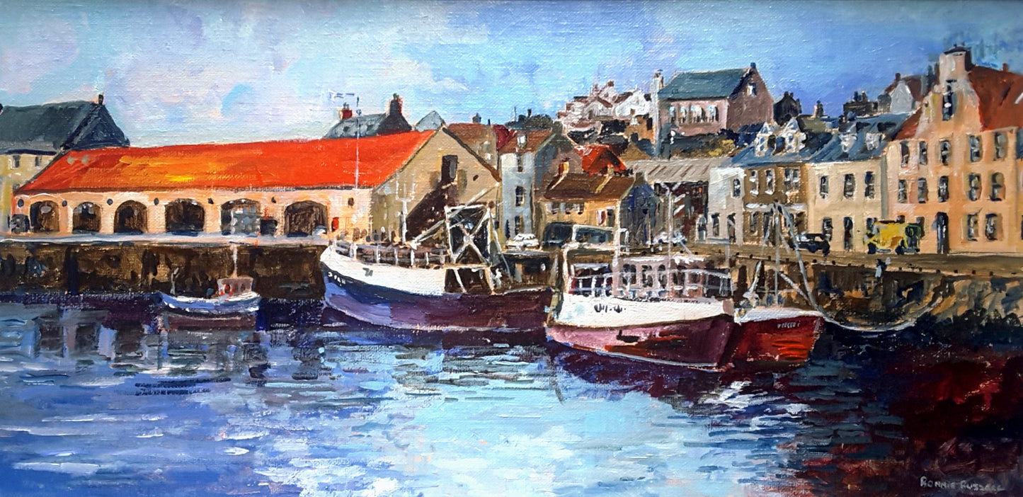 The red roofs of Pittenweem are complemented by deep blues in this view of the beloved east coast village by artist Ronnie Russell.