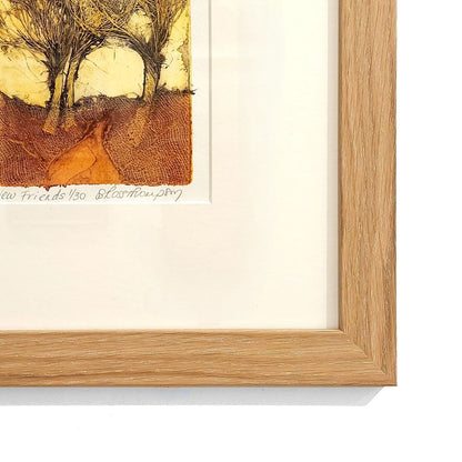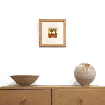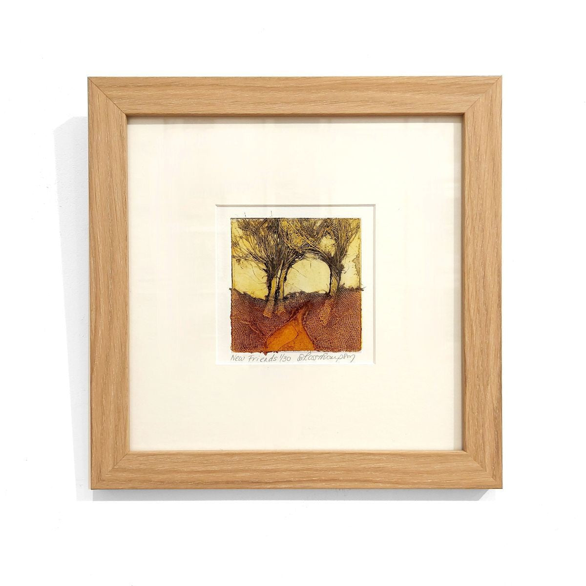 Born in London and raised in Norfolk, collagraph artist Sarah Ross-Thompson now calls the coasts of Dumfries and Galloway her home. An academic child, Ross-Thompson came to art as a profession later in life, after completing a degree English and Classics and starting a family. Encouraged by a life class tutor and financed by the proceeds from her first solo show, she bought an etching press and began to experiment with the printmaking technique of collagraphy. Printing with found objects, from oats to scraps of fabric, she weaves a variety of textures and colours into her works to capture the coasts and landscapes of Galloway and further afield.