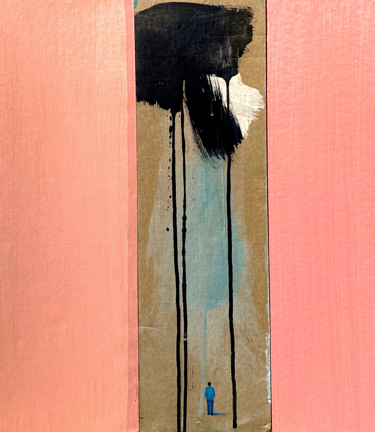Inky clouds drip onto a solitary figure in this dreamscape.