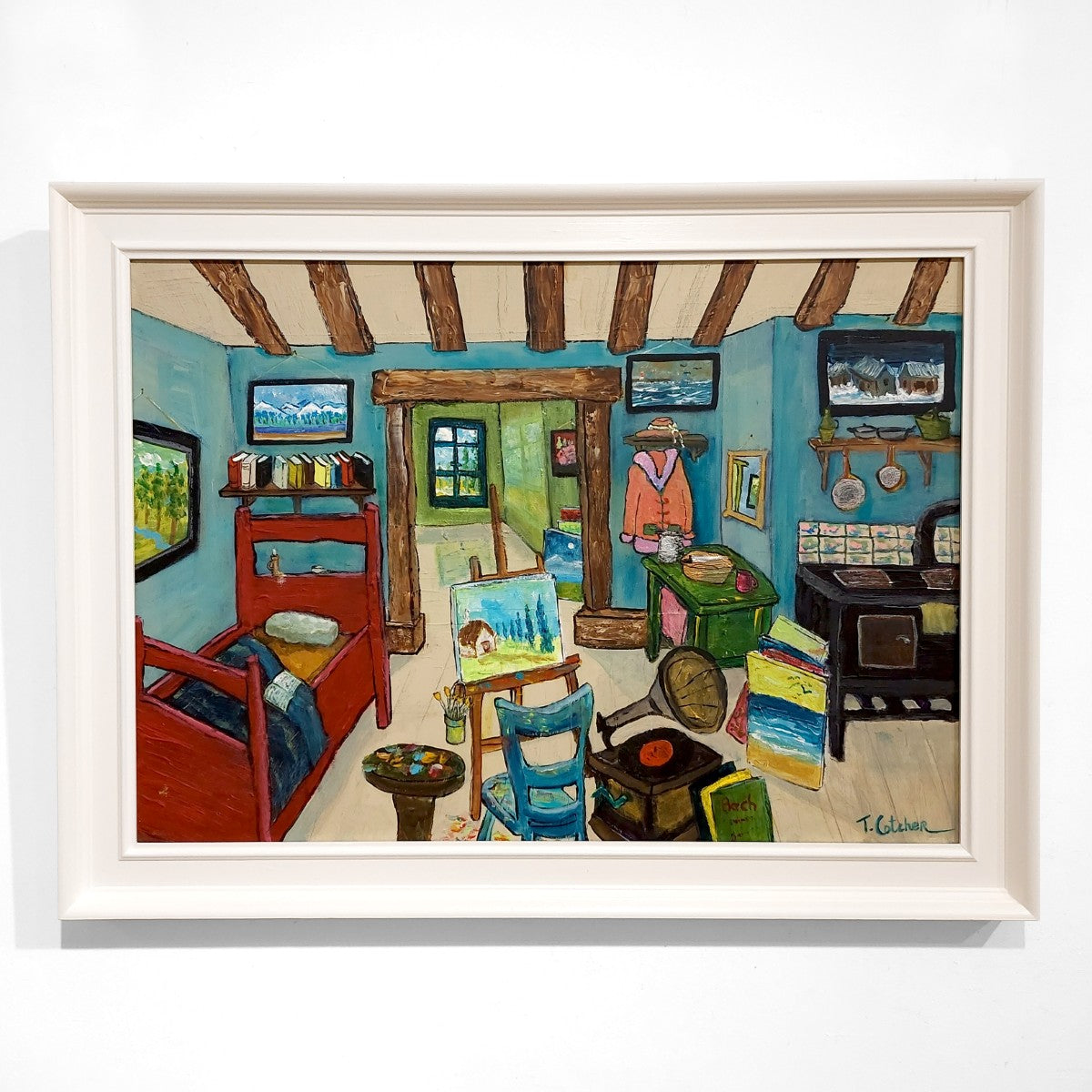 All the elements of a happy bohemian lifestyle - books, gramophone, easel - are strewn around this artist's dwelling by Tom Cotcher.