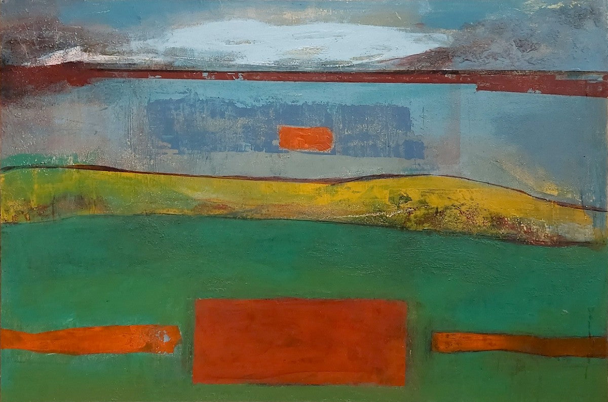 Geometric shapes balance organic horizons in this beautifully vivid abstract landscape by Ursula Cleary.