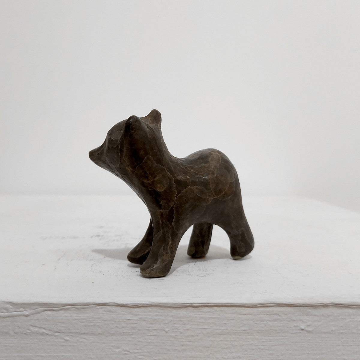 A bronze cast bear cub sculpted by Zita Abreu. The bronze has delightful markings and surface texture.